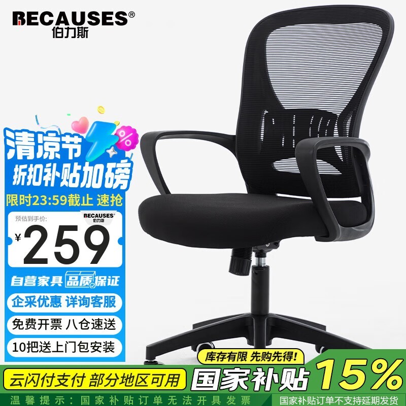 伯力斯人体工学电脑椅促销:京东限时优惠218元