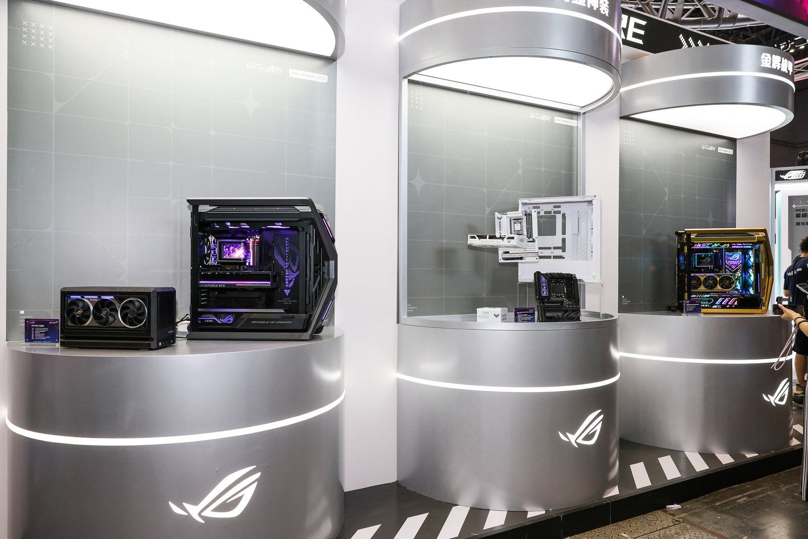 ROG玩+乐园现场展出首款AMD平台ROG背置主板——ROG CROSSHAIR X870E HERO BTF。有背置接口设计和背置显卡供电插槽,提供600W+电能,减少正面线材,美观易理线,小白装机轻松上手。近乎全覆盖的金属装甲,加上Polymo动态灯效2.0,让颜值再提升。采用18(110A)+2(110A)+2供电模组,搭配混合双模超频,轻松驾驭AMD锐龙9000系处理器。再度给大家扩充BTF背置系列产品阵容,满足大家所需。