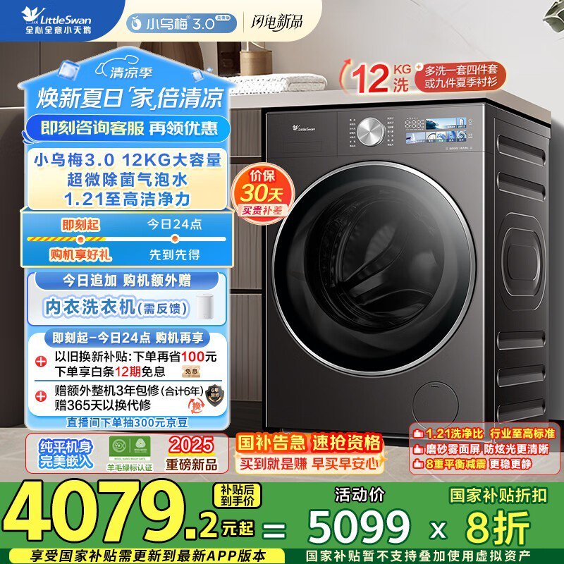 小天鹅滚筒洗衣机,京东优惠价3822元