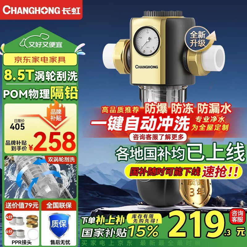 长虹7.5T前置过滤器大流量设计,健康用水守护家