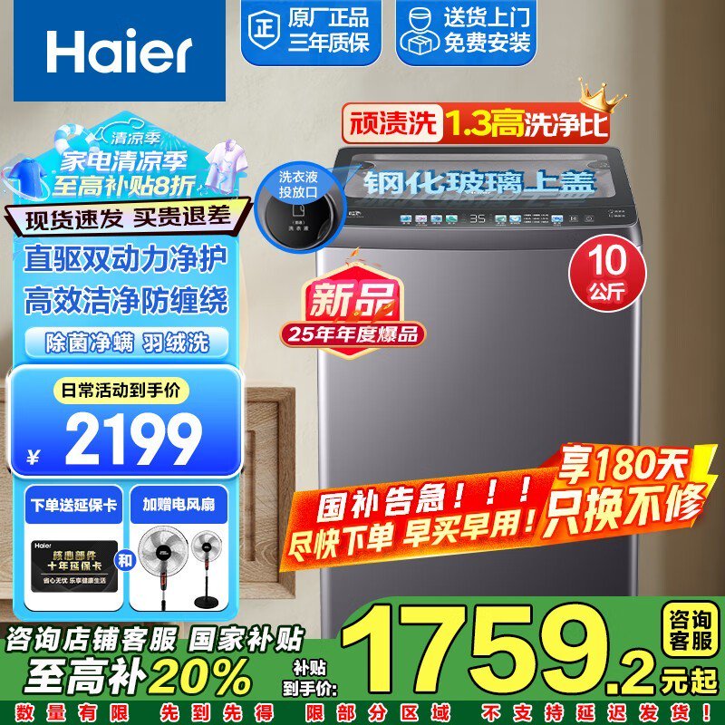 海尔双动力洗衣机10公斤直驱变频BZ60E特价1759元