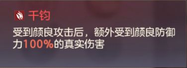 颜良具备攻防双修的特性,羁绊效果也延续了这一点。基于防御属性,全队可获得免伤加成,增强其生存能力,并提升千钧技能带来的真实伤害。同时,凭借攻击属性还能提高全体武将及自身输出,并赋予一定初始怒气。