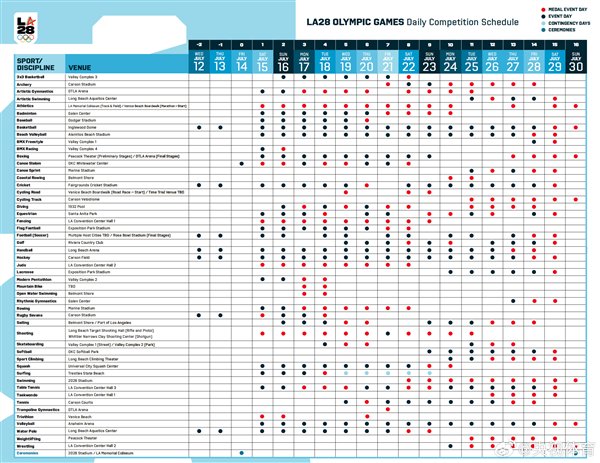 快科技7月15日消息,2028洛杉矶奥运会倒计时三周年之际,官方赛程正式公布。同时,洛杉矶奥运会开闭幕式时间确定。