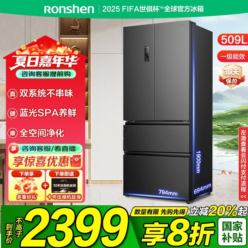 容声509升法式冰箱京东优惠低至2222元