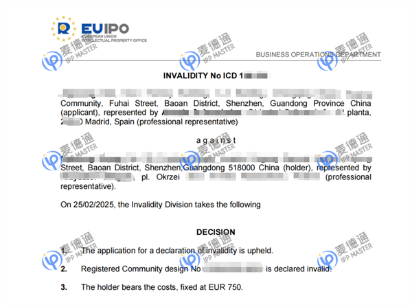01、24年9月,有客户咨询麦德通,希望对2022年12月获证的欧盟外观专利发起无效。