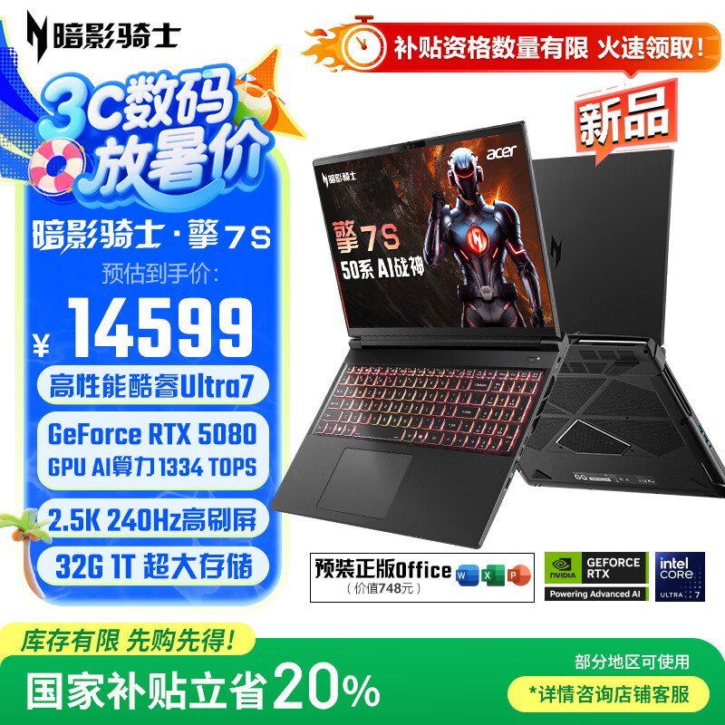 宏碁暗影骑士·擎7S笔记本京东优惠价14199元