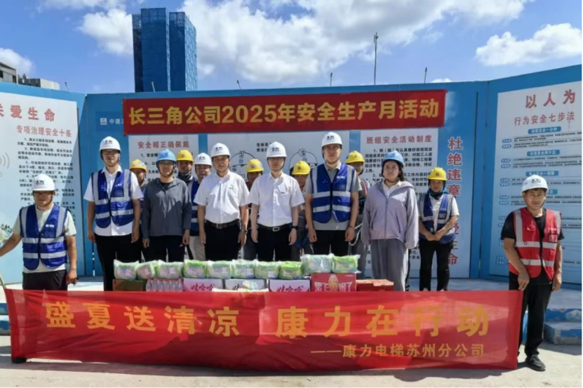 康力电梯前线运营中心总裁王立凡来到苏州长三角一体化示范区未来产业园工程安装现场慰问。烈日下是一片火热的建设场景,目前,数十台康力电扶梯的安装调试工作正在紧锣密鼓地推进中。