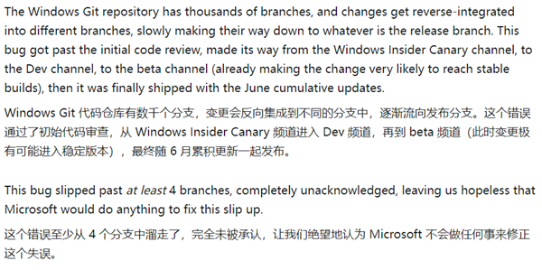但就和大多数反馈一样,根本没有人回应,所以修改后存在缺陷的代码已经覆盖到Windows 11正式版、Beta版、Dev版和Canary版。