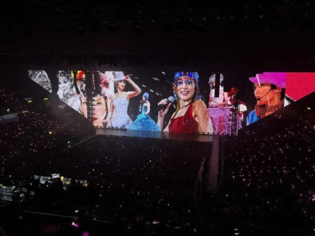 林忆莲《回响 Resonance》2025巡回演唱会以“时空交错”为核心概念,510㎡VA透明屏构建“隐形叙事空间”。舞台核心是直径10米的圆形升降台,周围环绕的环形透明屏高通透率设计,既不遮挡后方乐队与灯光装置,又能增加光影营造层次感,形成“虚实叠影”效果。黑灯高亮高对比度,色彩逼真,配合林忆莲细腻的声线,带来极具震撼的视听体验。