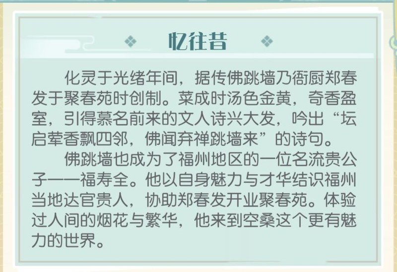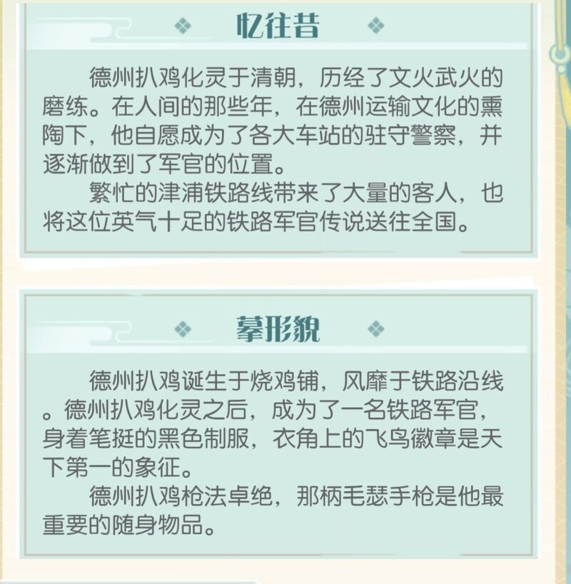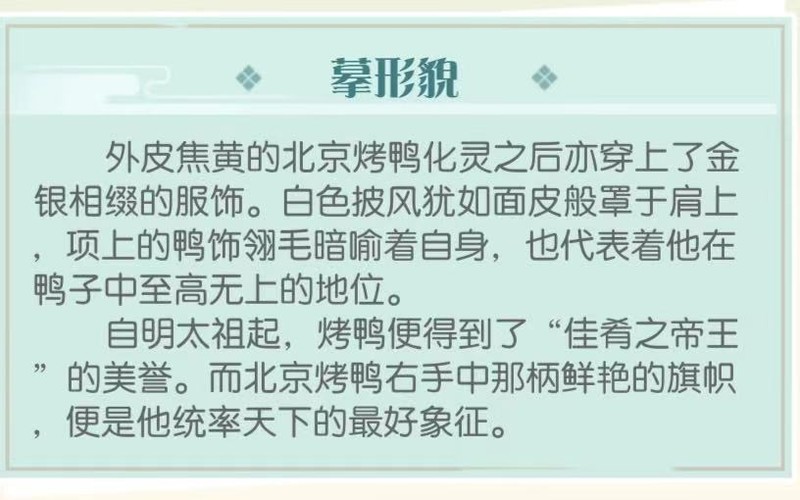 食物语是一款以中华美食文化为背景的养成类游戏,玩家将与食魂们展开一段段奇妙羁绊。本篇图鉴汇编聚焦早期核心食魂,从鹄羹、佛跳墙到德州扒鸡、腊味合蒸,带你了解他们的性格设定、专属礼物与时装,以及背后温暖又动人的故事。持续更新中,敬请期待!