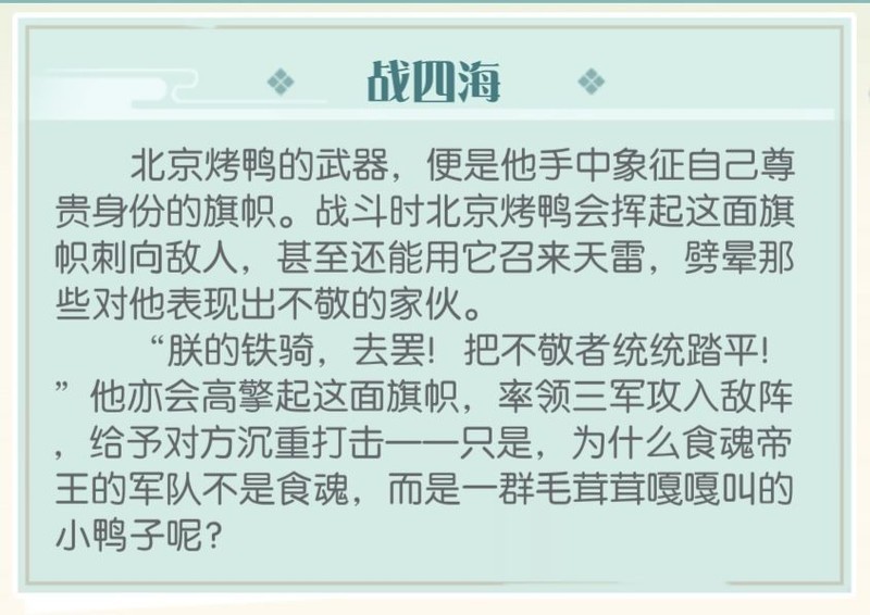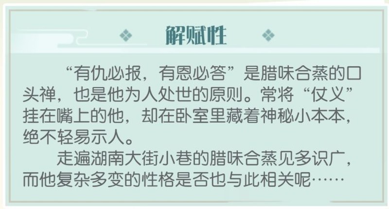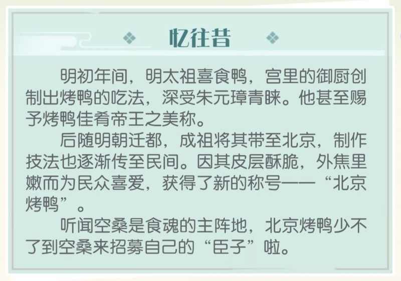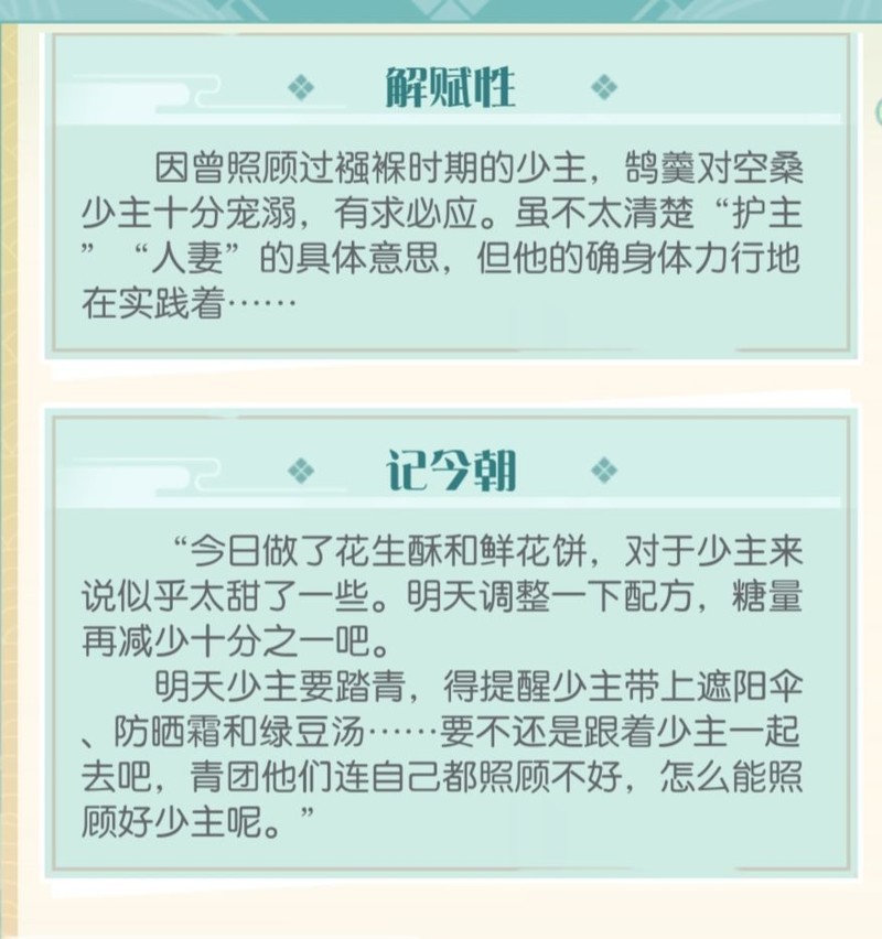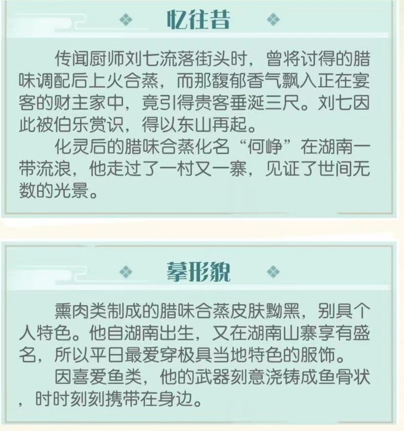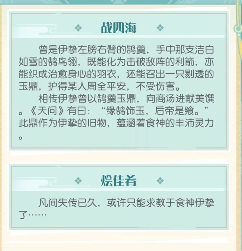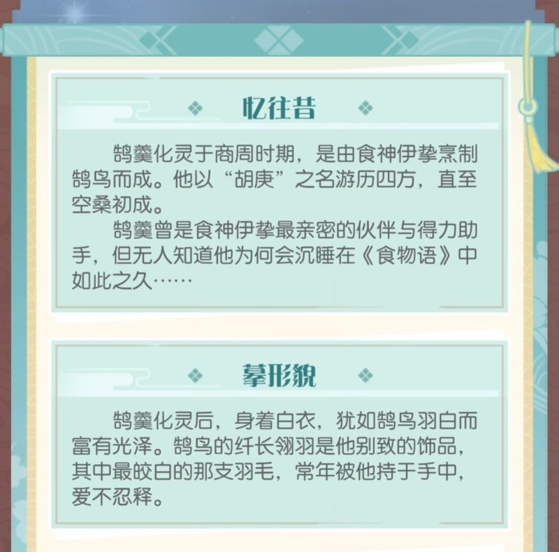 角色故事中提及雉羹,暗示其存在,同时解释了鹄羹沉睡的缘由,主线尚未推进至此。