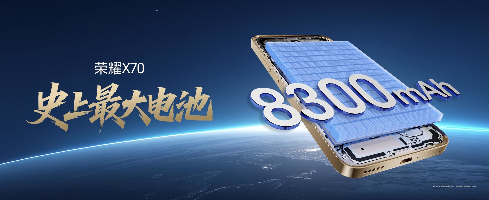 荣耀X70搭载第三代青海湖电池,容量高达8300mAh,是当前行业最大容量电池。同时,该机还基于架构级能效专项优化,进一步延长续航,综合场景亮屏时长18小时、短视频播放27小时,用户正常使用实现两天一充,重度使用也能满足一天需求。
