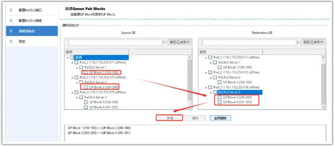 3. 选择流端点:勾选上server1和server2打向server3的QP block,点击完成即可;