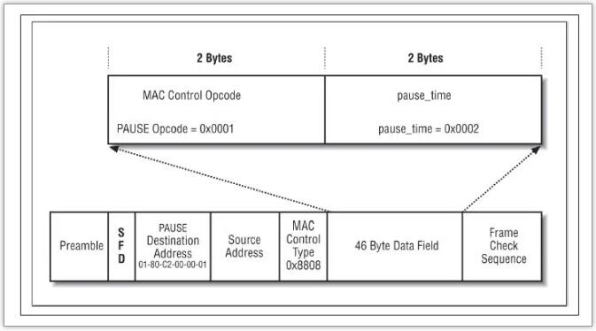 • 暂停的持续时间由报文中的Pause Time字段指定(单位是512 bit time,可换算成时间)。