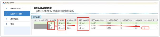 2. 配置RoCEv2 Server:配置DSCP值:40,配置ipv4地址与DUT对应,阻塞端口port3的QP Block数量设置为2;(需要保证源QP Block数量与目标QP Block数量一致)
