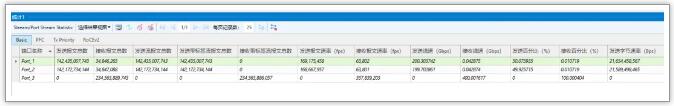 5. 先将Port 1和Port2打往Port3的线速流量运行起来,此时可以观察到port1和port2的发送速率为100%,然后将DUT使能PFC功能后,可以观察到两端口流量的发送速率降速至50%;
