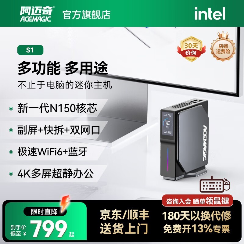 阿迈奇S1迷你主机N100准系统限时特惠659元