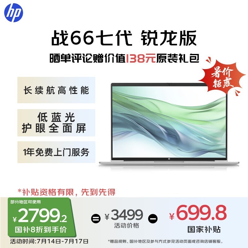 惠普战66七代轻薄本特惠,锐龙R5加持仅需2785元