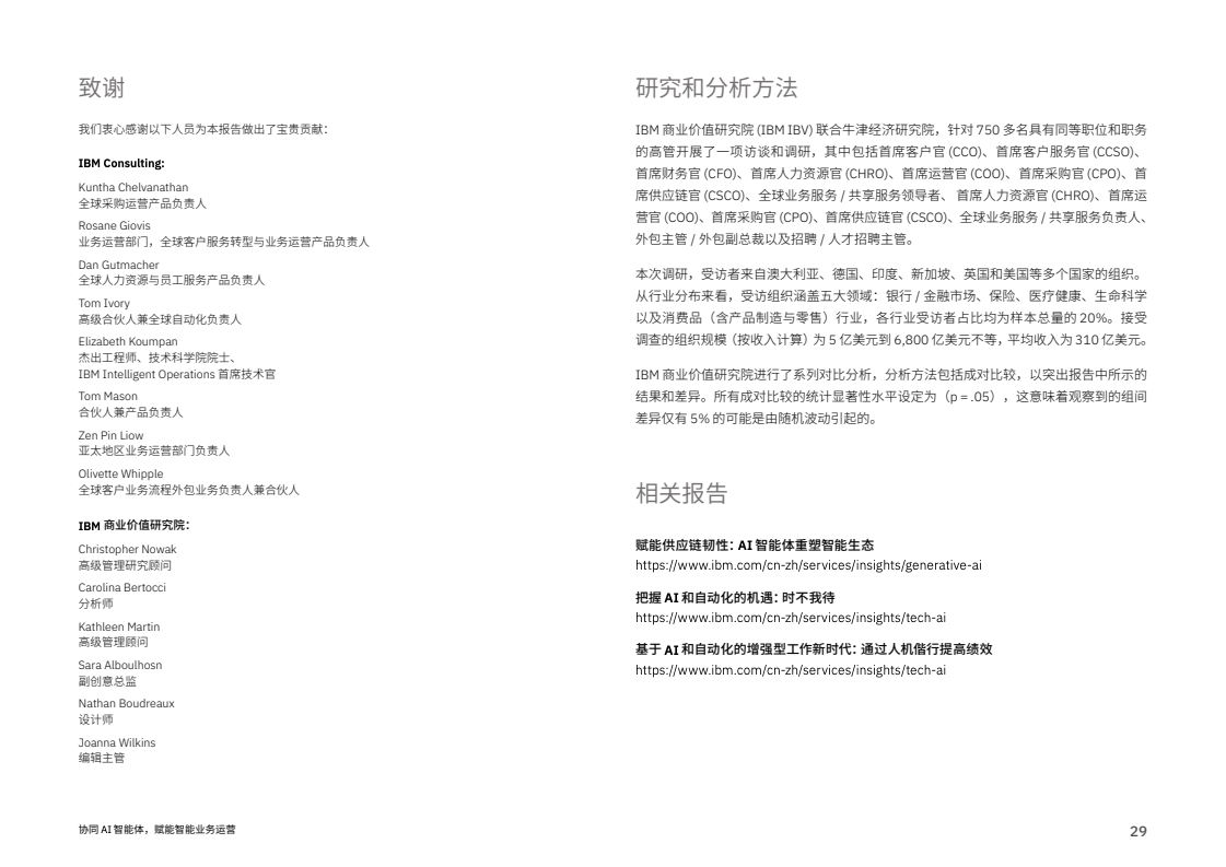 IBM 商业价值研究院(IBM IBV)的最新研究表明,业务运营正迎来一场深刻变革。我们对6个国家的750名不同行业运营高管开展了一项访谈式调研。超80%的受访者表示,将全球业务服务自动化列为战略要务,且寄望于智能体实现这一目标。86%的高管预测,到2027年,在AI智能体的推动下,流程自动化和工作流重塑将获得质的飞跃。