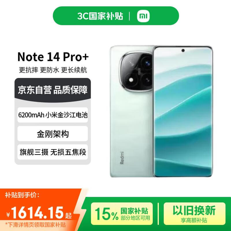 红米Note 14 Pro+ 5G(12GB+512GB)京东优惠价1563元