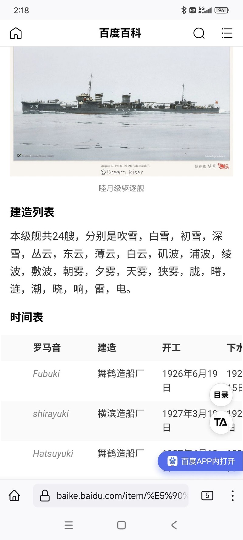 吹雪级列表