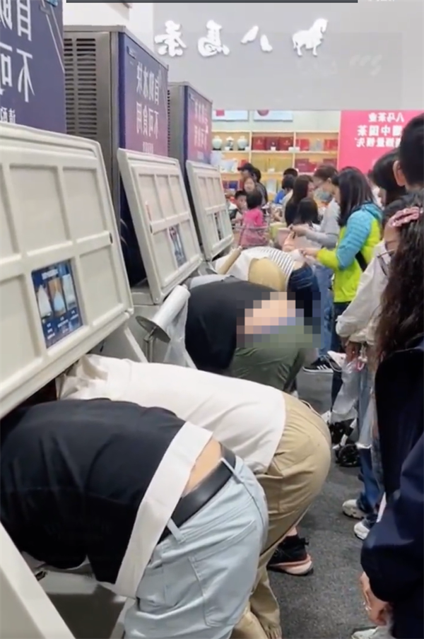 由于设计问题,制冰机的柜子很深,出冰是在最里面,手短的人就要把一半身子伸进去才能够着,所以才导致大量人排队。