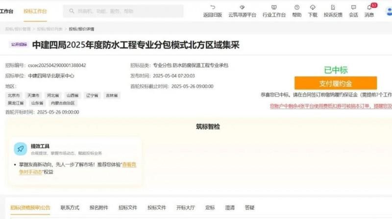近日,凯伦股份成功中标中建四局2025年度防水工程专业分包模式北方区域集采、中建六局第六建设2025年防水工程专业分包集采招标,再度彰显公司的行业硬实力,为公司与中建集团的合作开启了崭新篇章。