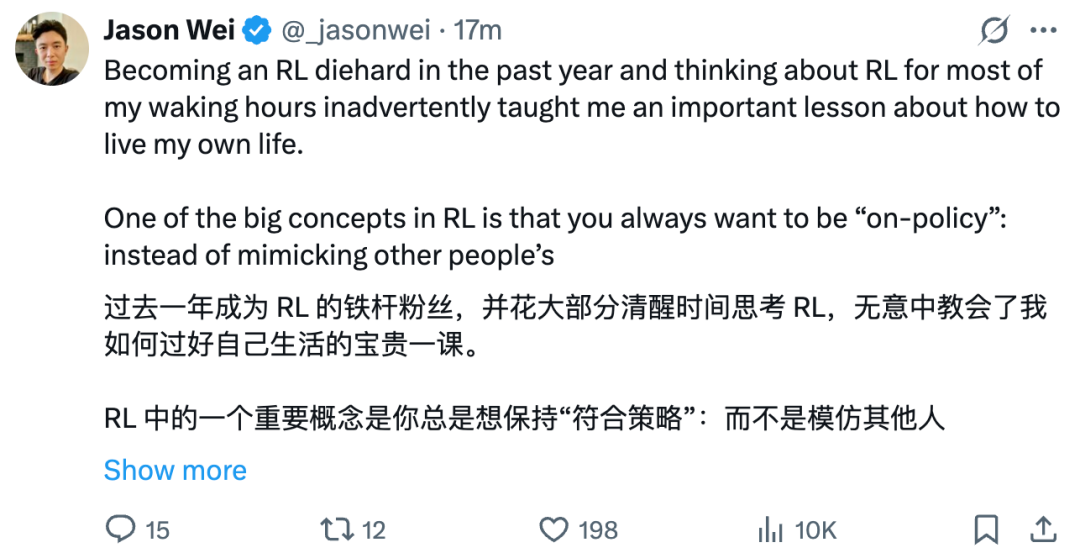 在发了这篇技术博客没多长时间,Jason Wei 又发了一篇推特。