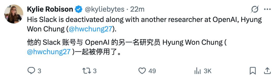 并且,他们二人的 Slack 账号已经被停用。机器之心也从 OpenAI 相关人士证实了该消息,「(Jason Wei)Slack 没了」,但是否是加入 Meta 还有待进一步证实。