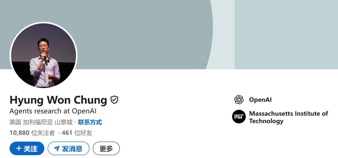 离开谷歌后,Hyung Won Chung 于 2023 年加入 OpenAI。