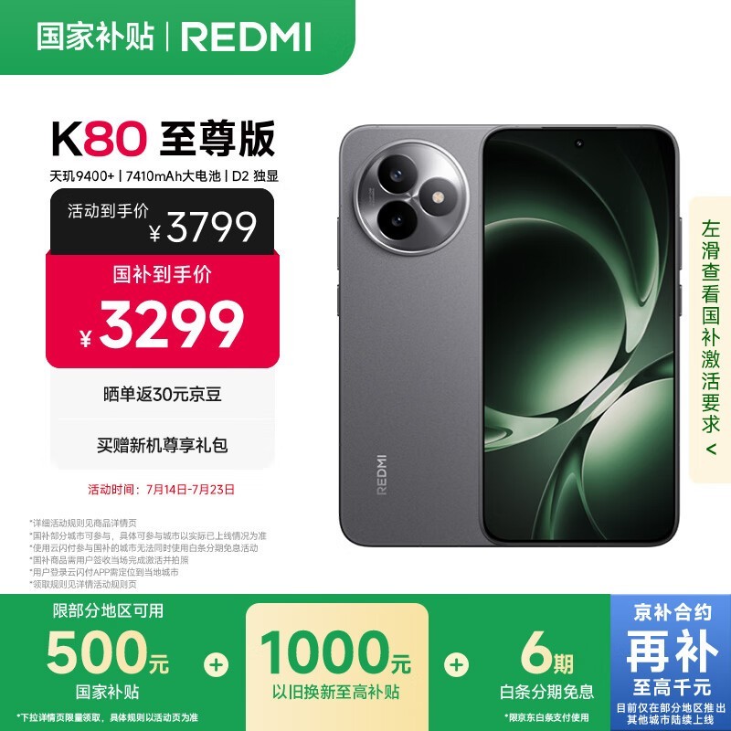 红米K80至尊版5G手机16GB+1TB砂岩灰立减500元限时抢购