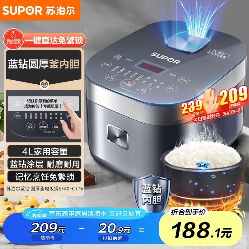 苏泊尔电饭煲4L限时优惠177元