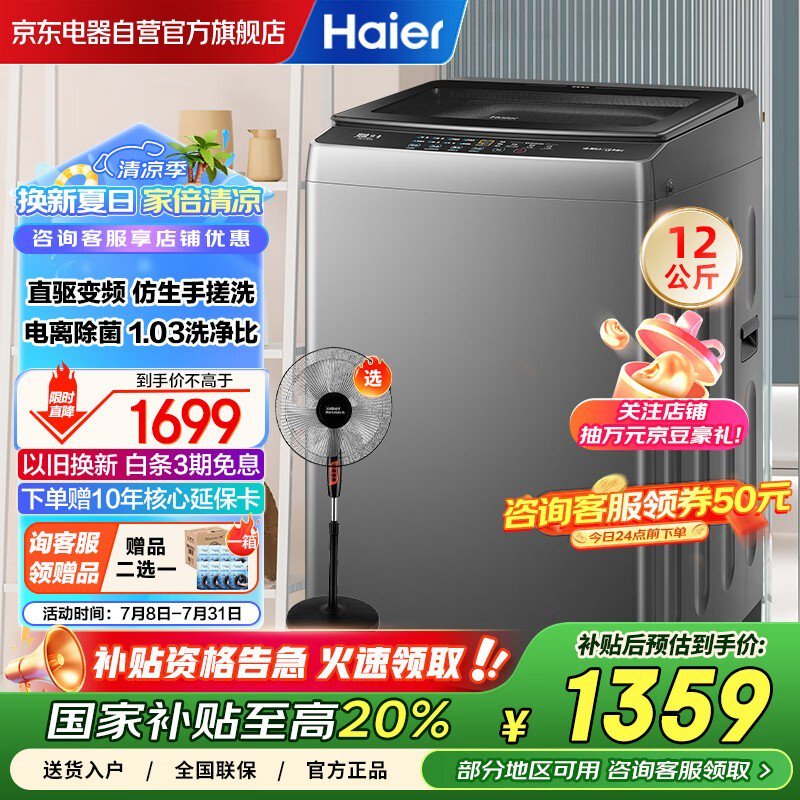 海尔12公斤波轮洗衣机 京东价1359元