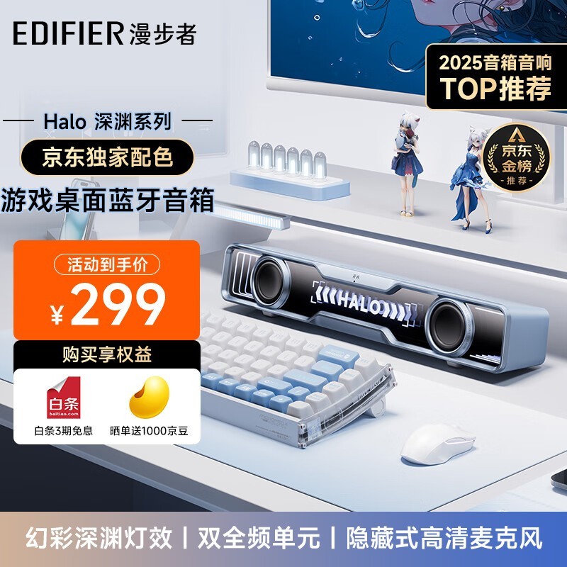 漫步者Halo SoundBar冰川蓝音响,音质颜值兼具