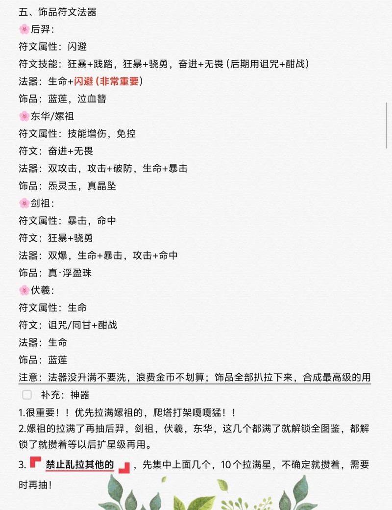 重点提示:氪金玩家可跳过嫘祖,半月内能满配后羿东华的直接忽略。