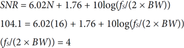 要了解过采样如何提高SNR,请使用前面的公式计算17位ADC的SNR。结果是SNR为104.1 dB。
