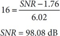 给定理想16位ADC,计算SNR,可获得的最大SNR为98 dB。
