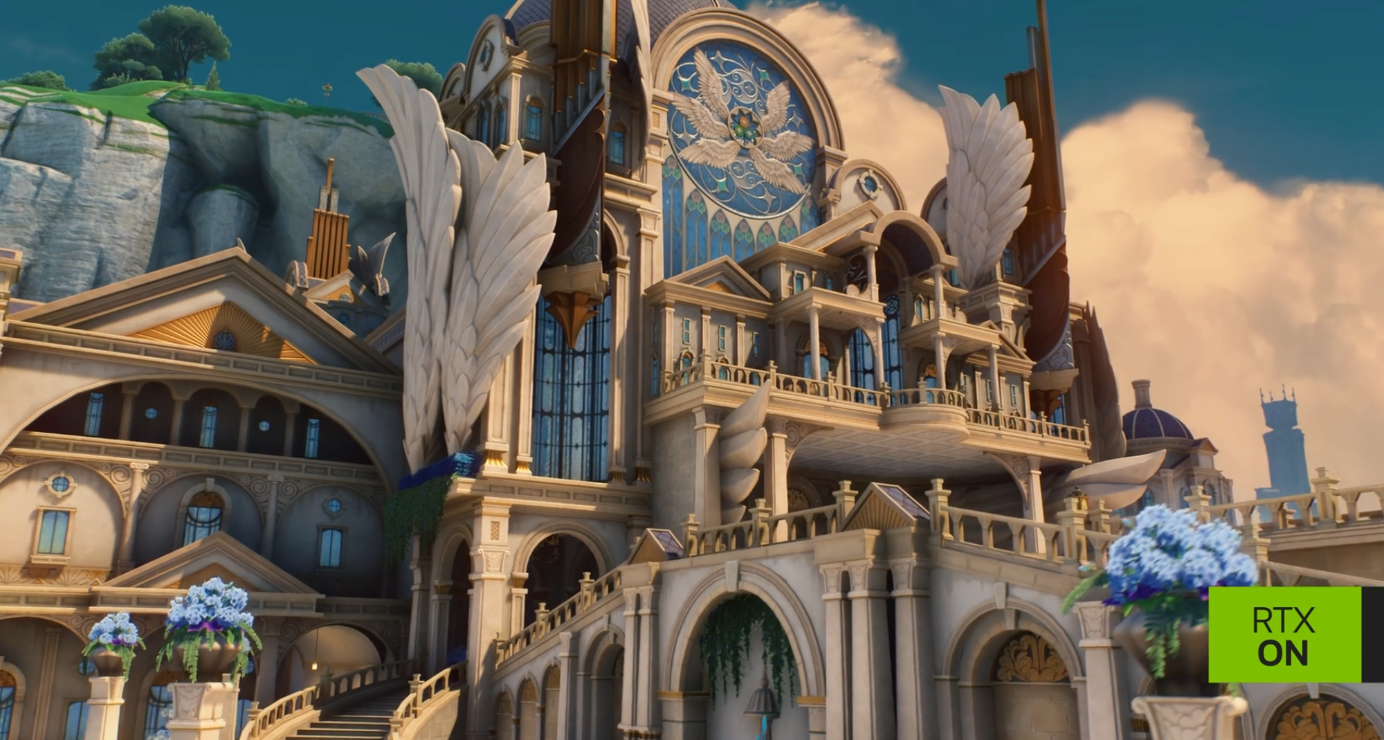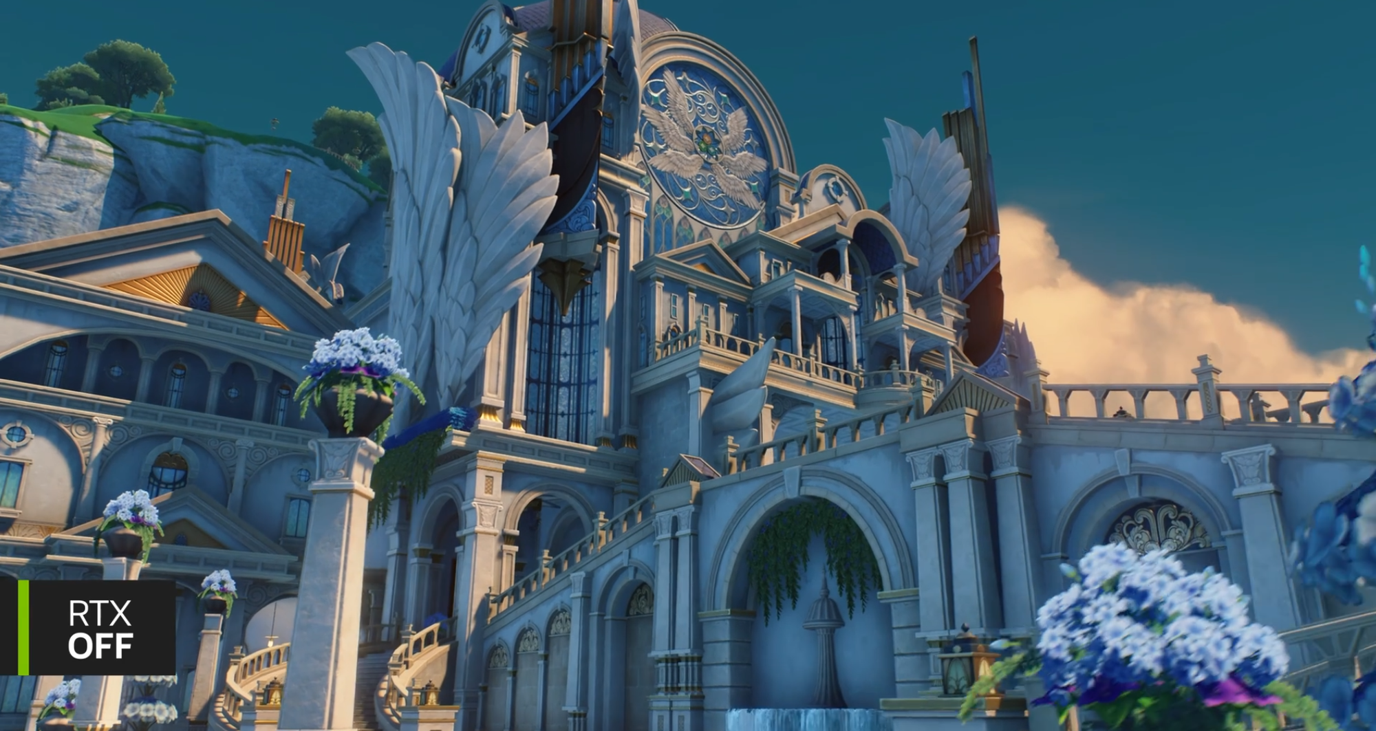 光线追踪技术优化了阴影的过渡效果,使阴影更加柔和且符合物理规律。全局光照让光线在场景中多次反弹,形成更自然的间接照明效果。如上图所示,在阳光的影响下,建筑表面的光源呈现暖色,而非RTXOFF下的冷色调,与场景表达更贴合。