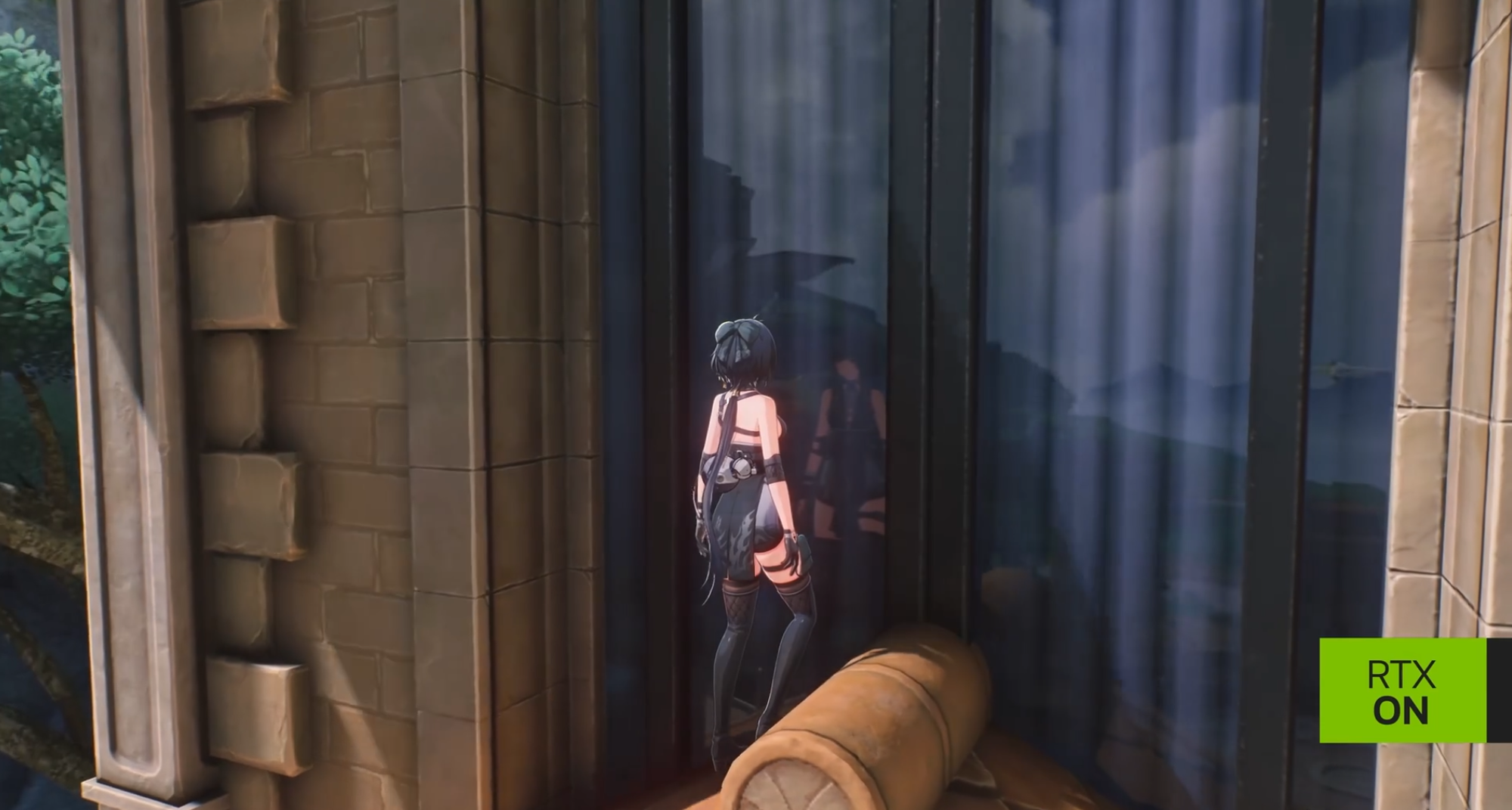 游戏中的水面、玻璃、金属等材质的反射效果更加自然,例如阳光照射在建筑玻璃上时,会真实地倒映出周围环境。比如角色的完整建模,以及远处的树木和天空等等。