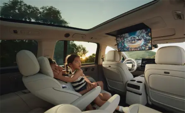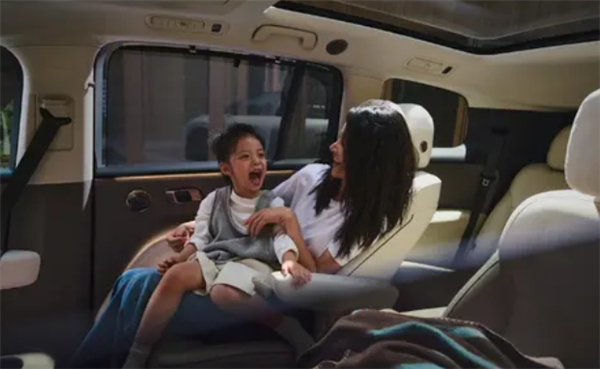 这车的内饰延续了理想家族的设计风格,第二排的配置相当豪华,有后排娱乐屏、小桌板、车载冰箱,还有第三排座椅加热、独立空调出风口、独立杯架,甚至还有分体式天窗和第二排遮阳帘。