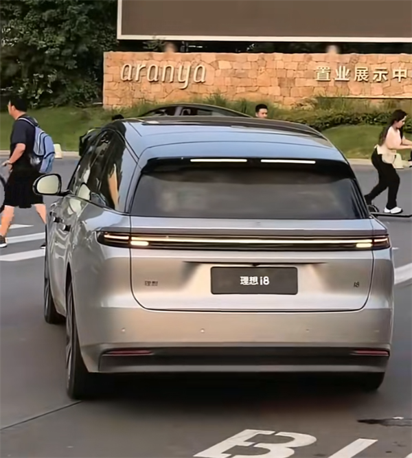 外观方面,理想i8的设计语言和理想增程SUV不太一样,前包围和理想MEGA有点像,前机舱盖还有隆起的筋线,星环灯也很显眼。