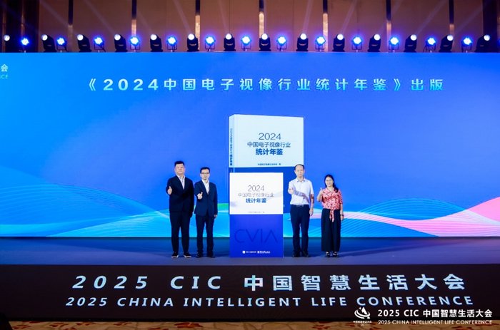在主旨大会上,协会副会长彭健锋联合京东、天猫、苏宁、抖音四大零售平台共同见证了“智慧产品焕新消费季”的启动仪式。协会秘书长董敏和电子工业出版社总编辑徐静为《2024中国电子视像行业统计年鉴》的出版揭幕。大会现场还发布了《2025智慧生活科技好物换新选购指南》。