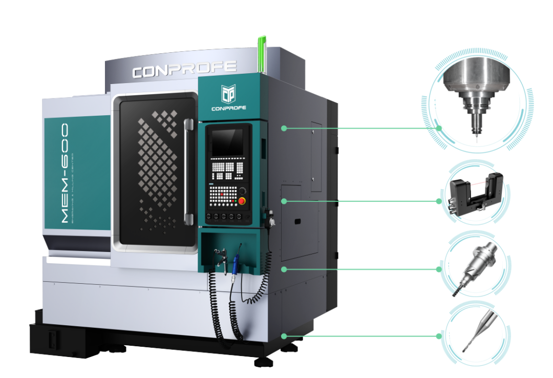 汇专采用超声绿色雕铣加工中心MEM-600,结合超声振幅测量仪、超声冷压刀柄及高效飞速PCD钻头的整体解决方案进行加工。