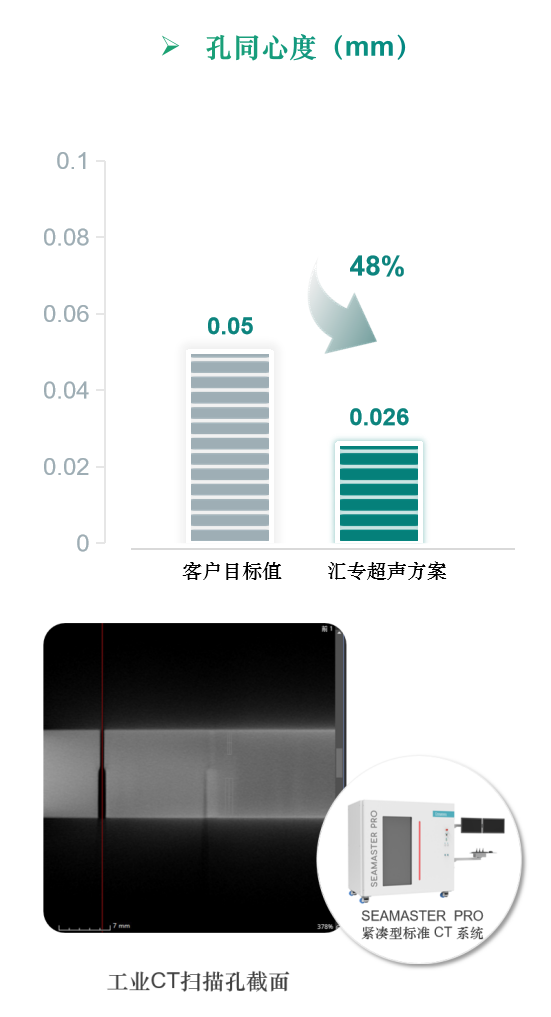 汇专超声方案加工,孔同心度优于目标值48%