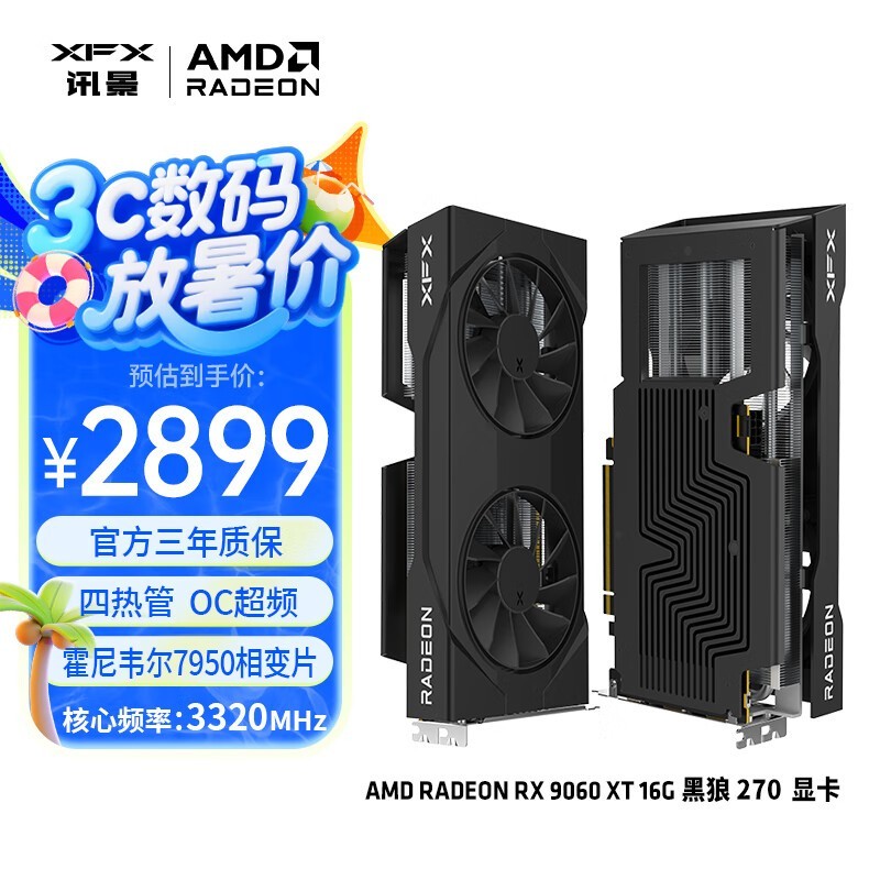 讯景RX 6600 XT黑狼16G显卡限时特惠