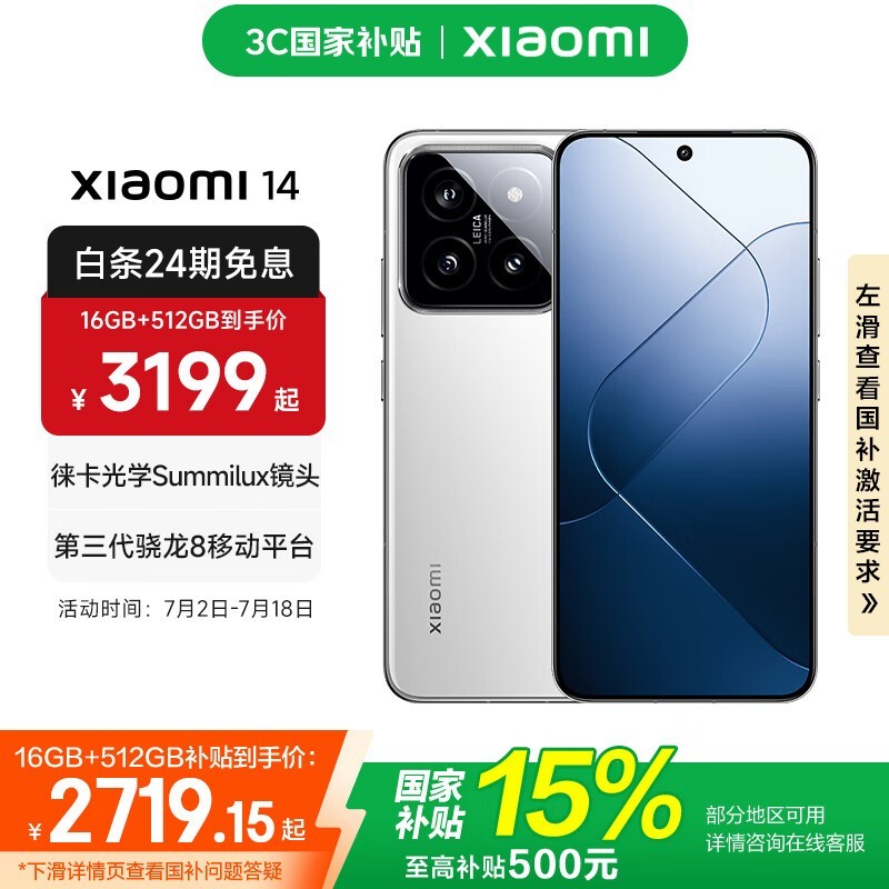 小米14 5G手机白色16GB+512GB限时特惠