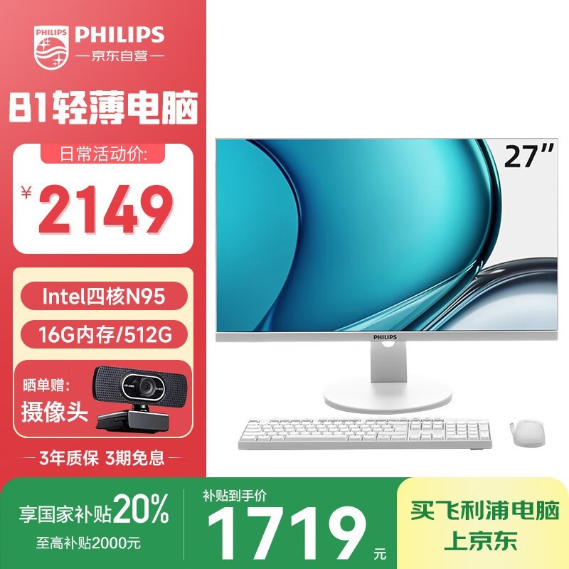 飞利浦27英寸一体机限时特惠1719元