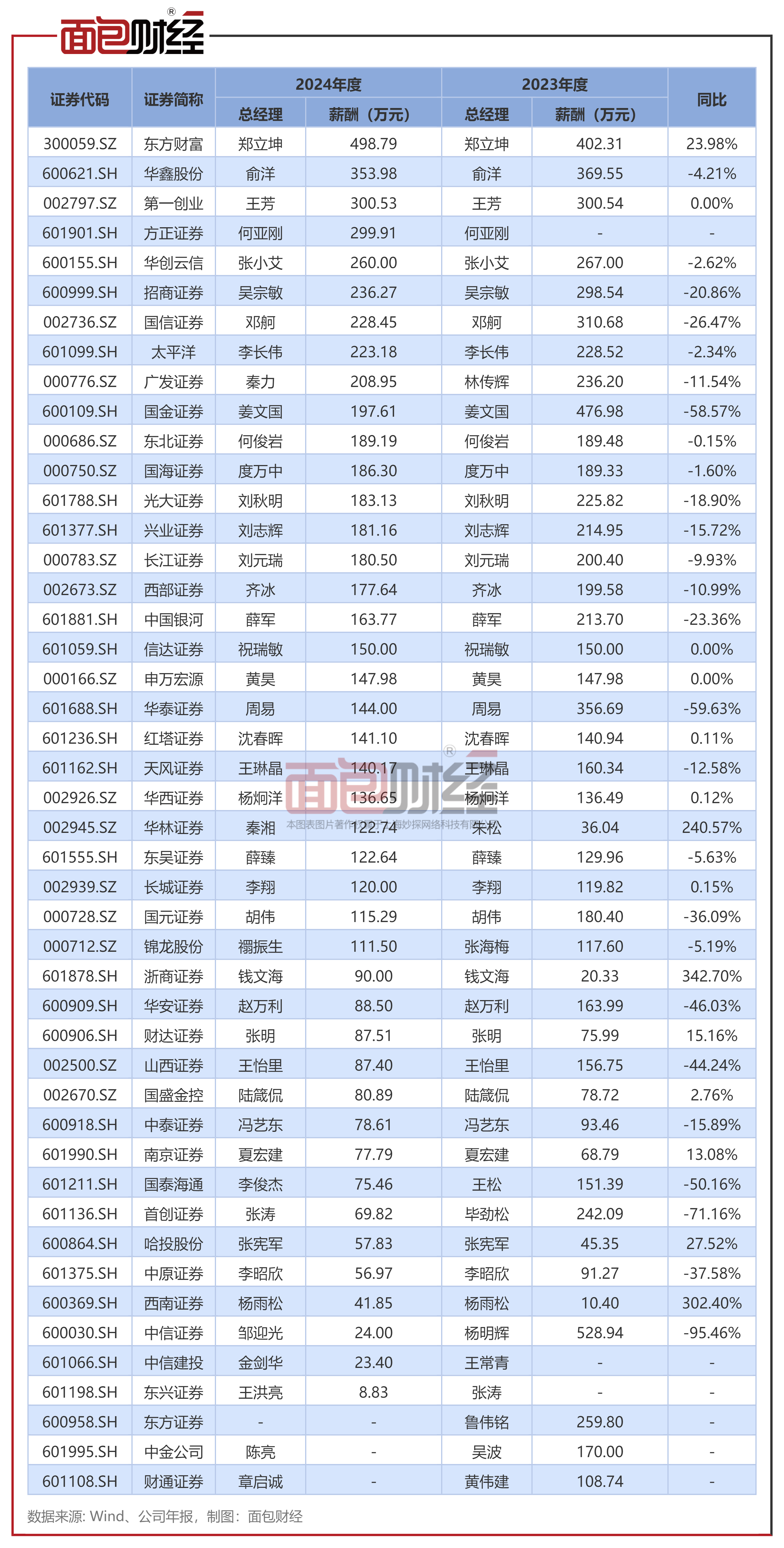 东方财富、华鑫股份、第一创业总经理年薪超300万元