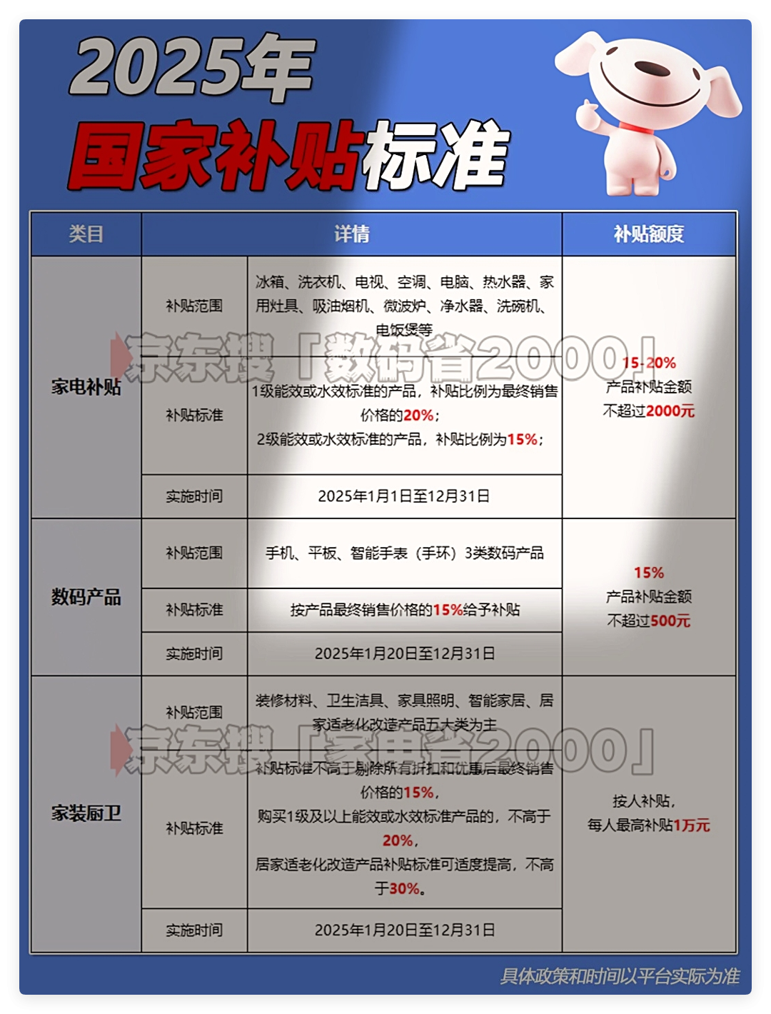 京东APP搜“家电省2000”→ 领资格券 → 选“政府监管补贴”标识商品 → 云闪付支付自动抵扣。