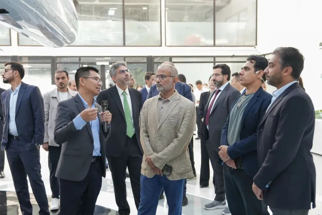 当天上午,阿联酋民航总局局长赛义夫·苏韦迪阁下带队莅临时的科技调研,阿联酋驻上海总领事穆哈纳德·纳克比阁下陪同。时的科技创始人兼首席执行官黄雍威做欢迎致辞,创始合伙人兼首席市场官蒋俊、联合创始人兼首席运营官汤晓明、联合创始人兼质量适航副总裁周龙超等陪同考察。